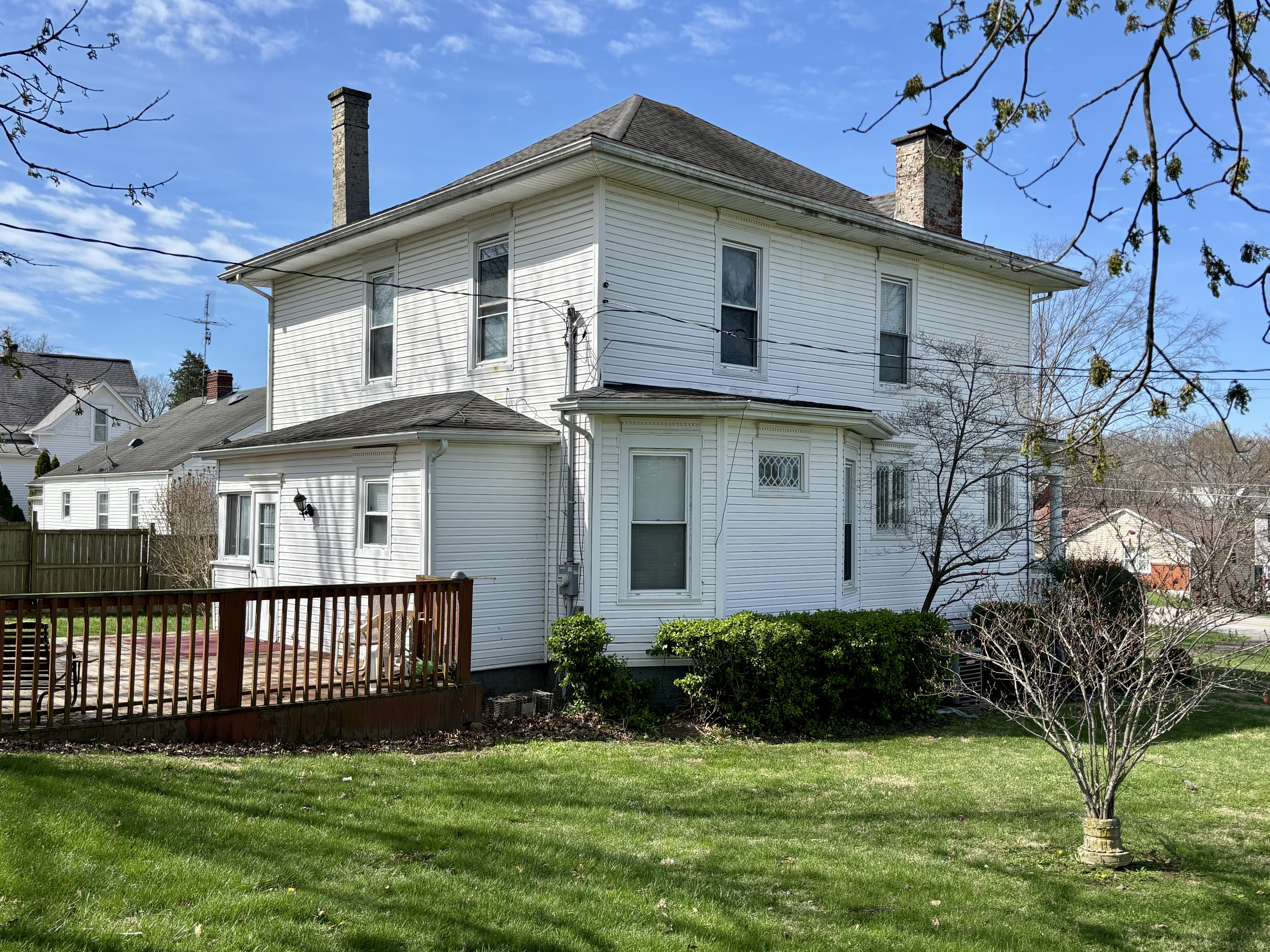 Welcome to this classic two-story home offering the perfect blend of character, space, and privacy-all situated on a beautiful 3.2+/- acre lot within the city limits of Springfield. This rare find provides the convenience of town living with the feel of a peaceful retreat. Inside, you’ll find four spacious bedrooms and two full bathrooms, along with a warm and inviting family room featuring a cozy fireplace- perfect for relaxing evenings. Just off the family room is a versatile bonus area ideal for a dining space, home office, or playroom to suit your needs. The home features a generously sized kitchen and a practical laundry/mudroom area for added convenience.  Much of the home showcases timeless vintage tongue-and-groove wood flooring, complemented by a mix of laminate, tile, and carpet throughout. Enjoy your mornings or unwind in the evenings on the welcoming covered front porch overliiking the expansive front yard. At the back of the property, you’ll find a detached garage/barn, offering excellent storage or workspace potential. Additional features include a full unfinished basement with exterior side access- perfect for storage and easy access to mechanical systems. With ample space, privacy, and character in a truly unique setting, this property is something special you won’t want to miss. Offered at $375,000 – make it yours today!