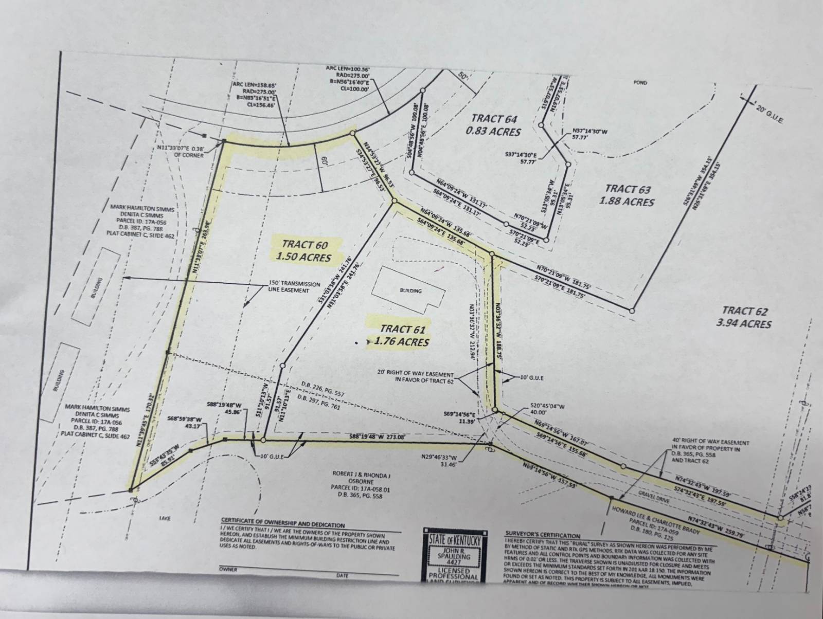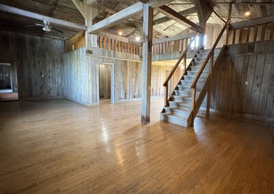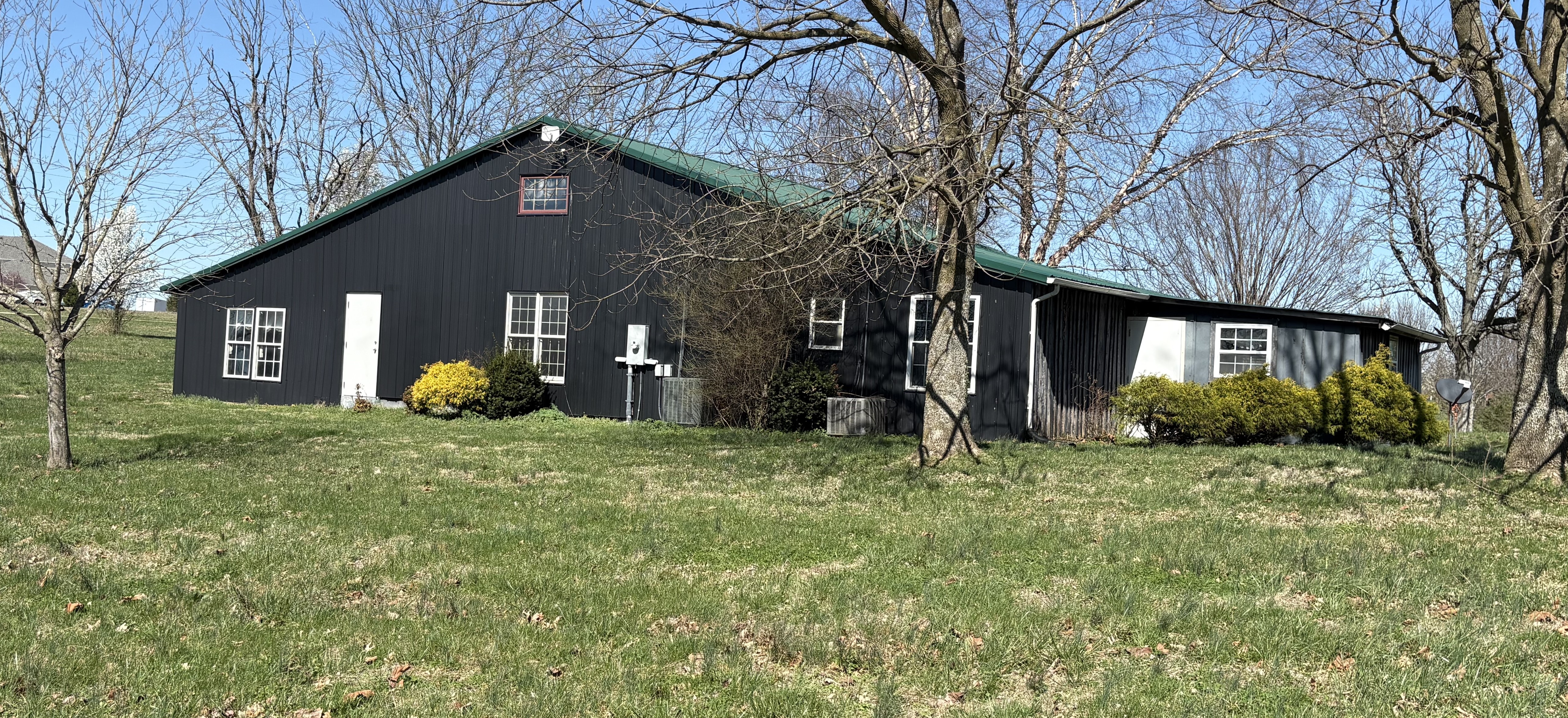 2373 Lincoln Park Road, Springfield, KY. Many opportunities await with this custom-finished barn home. Located just outside of town, this piece of property is close to city amenities, yet offers privacy and tranquility. This home is nestled onto a 3.26-acre lot (open lot, nicely wooded), consisting of (2) combined tracts, being tract 60 and tract 61 of Harmony Woods, Phase 4. Included is a full eat-in kitchen, 1 full bath, 1/2 bath, a shower/tub combo, an open loft, and a large living room area great for gatherings! Also features multiple rooms that you can make your own, whether it be a bedroom, den, office, etc. The home is a wood-frame structure with wood interior walls. The exterior is a combination of board and batten wood and metal siding and it features metal roof covering. The floors of the home are poured comcrete and the floor finishes are hardwood, tile, carpet and linoleum. Interior living area with central HVAC is 1,925 sq. ft. + or – , AND in addition, there is a 500 sq. ft. + or – portion with no central HVAC (right side of the home) and currently has only a LP gas fireplace; then the 240 sq. ft. + or – kitchen has a dual HVAC, in wall unit – no central HVAC. Offered @ 275,000. total.