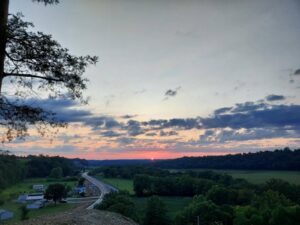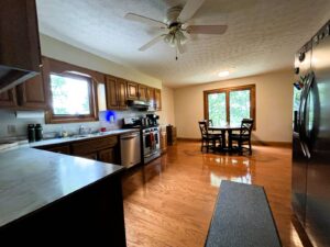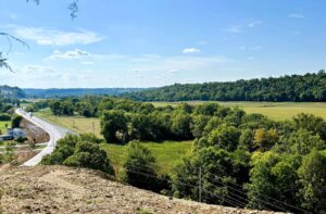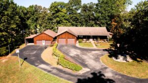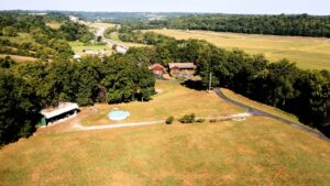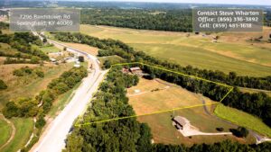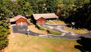 Cedar-sided, ranch home, w/garage, full basement on 8.179 acres.7296 Bardstown Road- Springfield, KY. Most spectacular is this charming, private Bourbon Trail Hilltop/Lookout property. Located midways, between Bardstown and Springfield is this custom built, ranch home (western cedar board & batten siding), with a full walkout basement, a 2 car, attached (heated) garage AND a 2 car detached garage with rear work shop/storage as well as a side shed. All of this is located at the rear-most portion of a private, elevated ridge with open pasture/grassland and wooded hillsides. The total parcel size is 8.179 acres. The home has a large open kitchen, a 1/2 bathroom and 1st floor laundry in the hallway off the kitchen, that leads to a spacious great room with vaulted ceilings. Rounding out the first floor is an extra- large, primary bedroom with adjacent full bathroom/make-up area/large walk-in closet and an adjacent 3-season room. The full walkout basement features a den, 1 full bathroom, 2 sleeping rooms, a hobby room and a large utility area for home service systems and storage. *1,700. sq. ft. of space on each of the 2 levels of the home, new Anderson windows (2 yrs. ago), new HVAC (3 yrs. ago) and of course, a blacktop driveway. Water source is a 22,000 gal. cistern (under the attached garage floor) with a filter system and UV water pasteurization system. Other structures on site include; a detached 40’X30′ garage/workshop combo (2 bays as noted above) with a covered shed on the side and a separate 16’X36′ machine shed. ***Breath taking views, park-like setting, plentiful wildlife (deer/turkey), hillside woods and privacy! All of this for $425,000 !! LISTING BROKERED BY MCELROY, WHARTON AND BOLDRICK RE LLC, CALL 859/481-1618 OR 859/336-3982 FOR INFO.